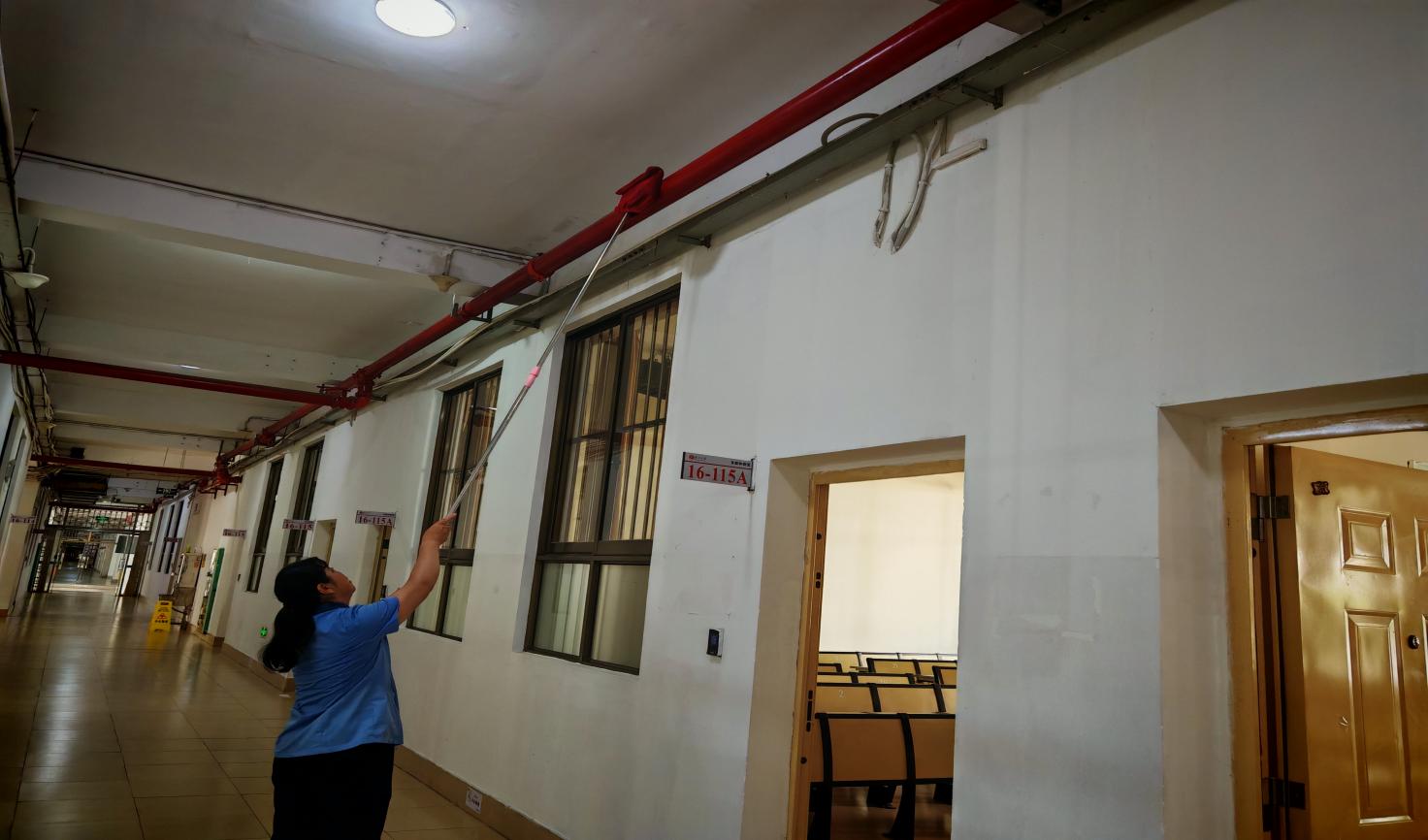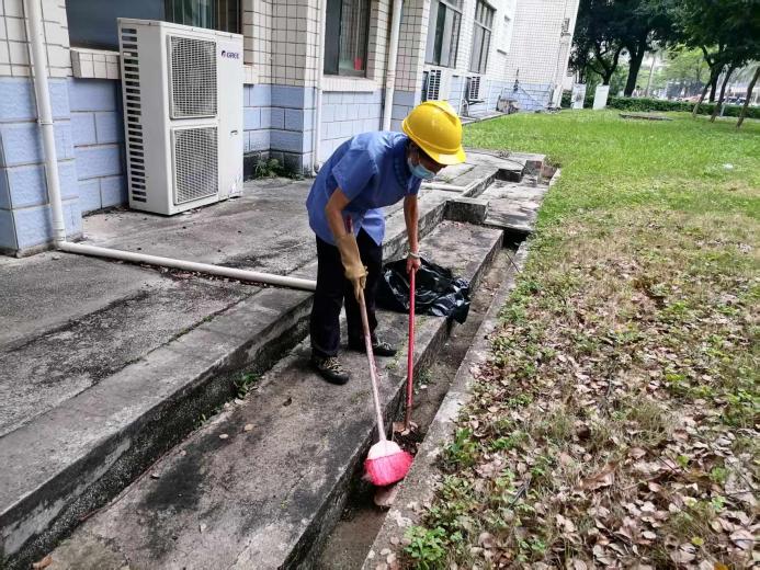 对语言中心、二教、三教、六教、十教、十一教、十五教、十六教和研究生院教室等教学楼宇进行日常卫生保洁服务工作,本周清理公共楼宇外围排水设施48次,清理公共楼宇天台排水设施41处。