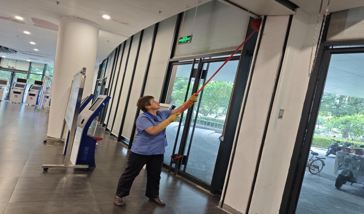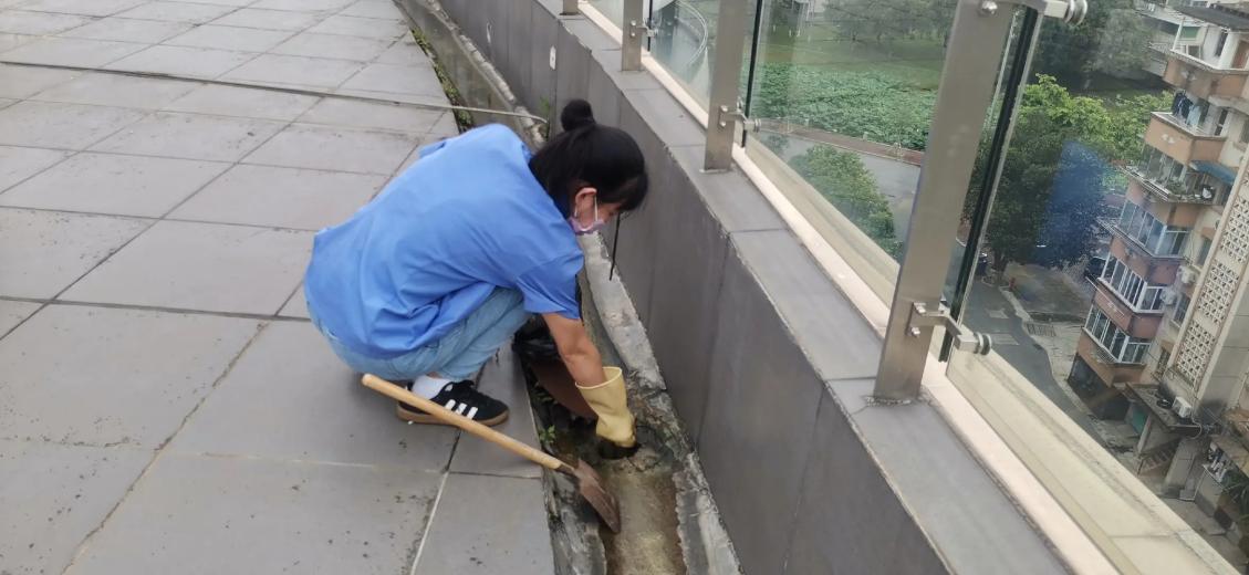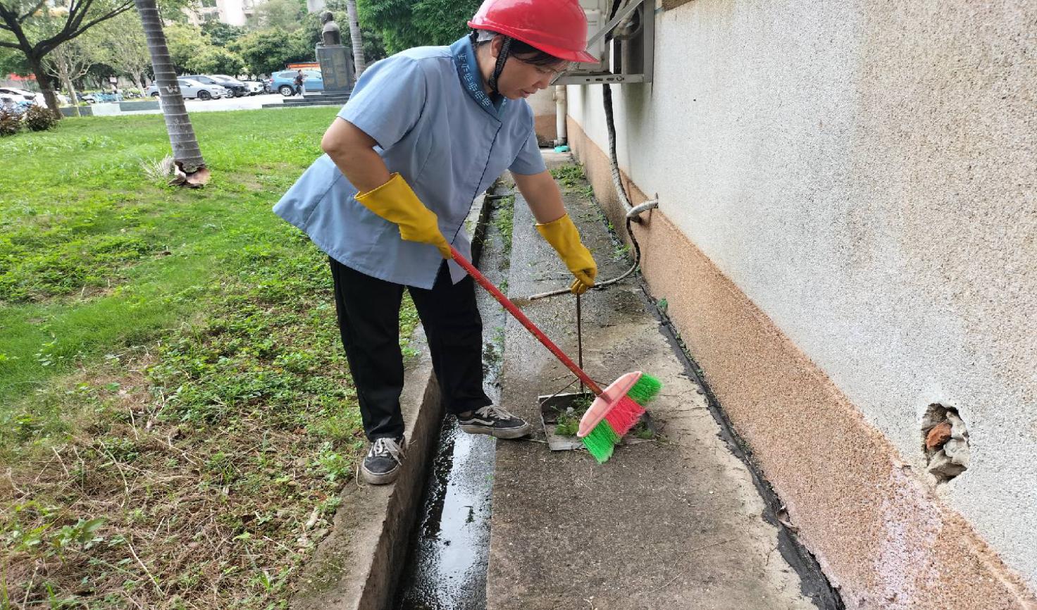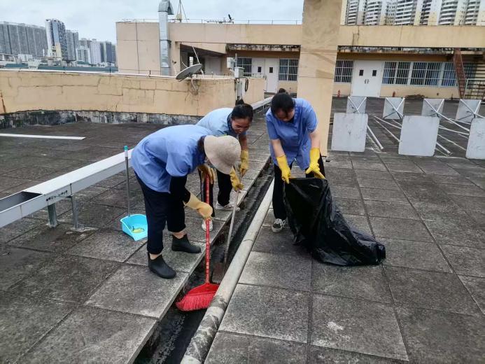 对语言中心、二教、三教、六教、十教、十一教、十五教、十六教和研究生院教室等教学楼宇进行日常卫生保洁服务工作,本周清理公共楼宇外围排水设施53次,清理公共楼宇天台排水设施40处。