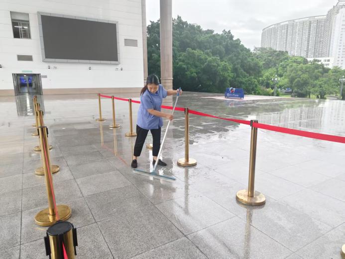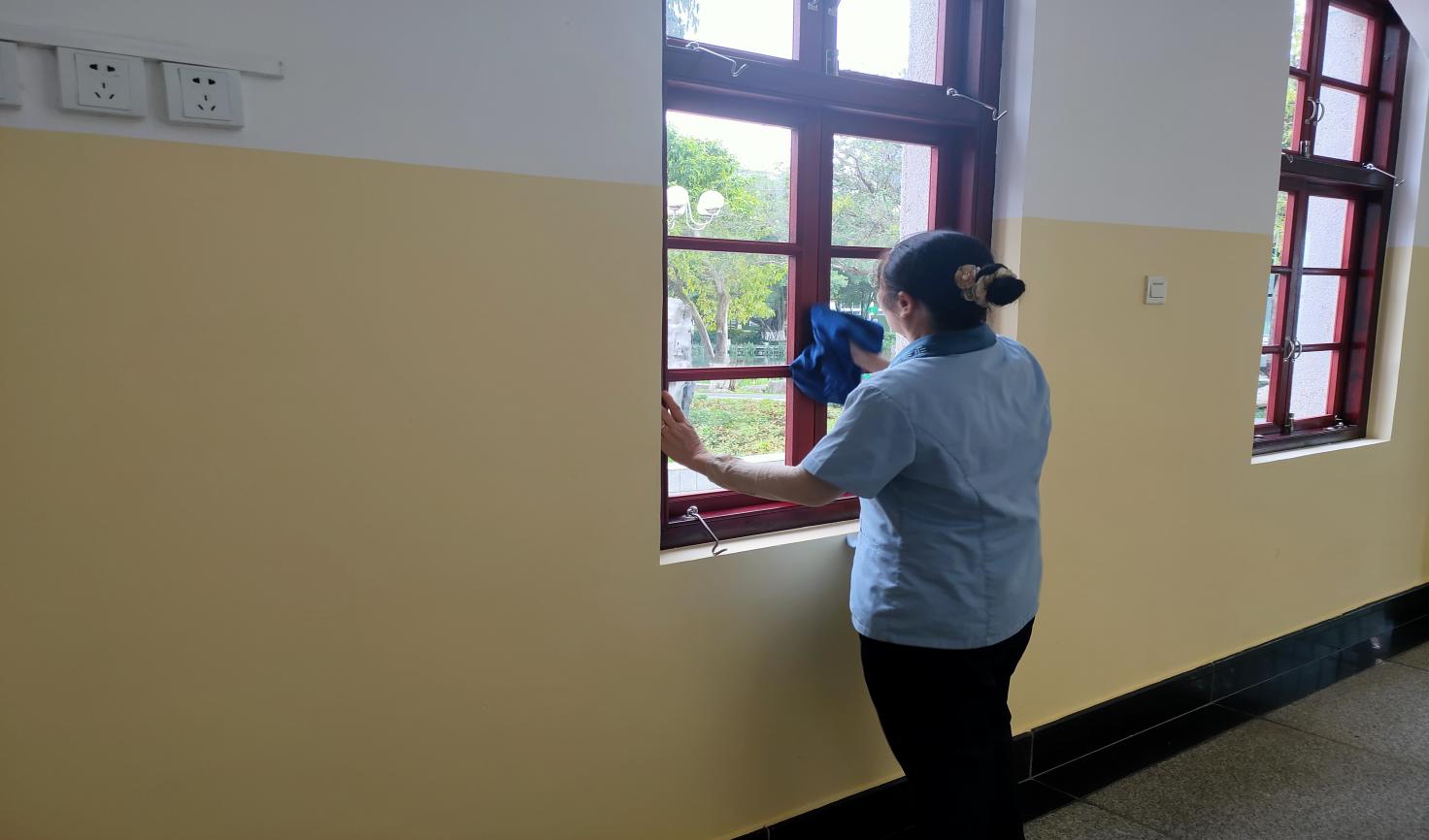 对劝学岛、大礼堂、办公楼、大学生活动中心、保卫处等办公楼宇进行日常卫生保洁等服务工作。