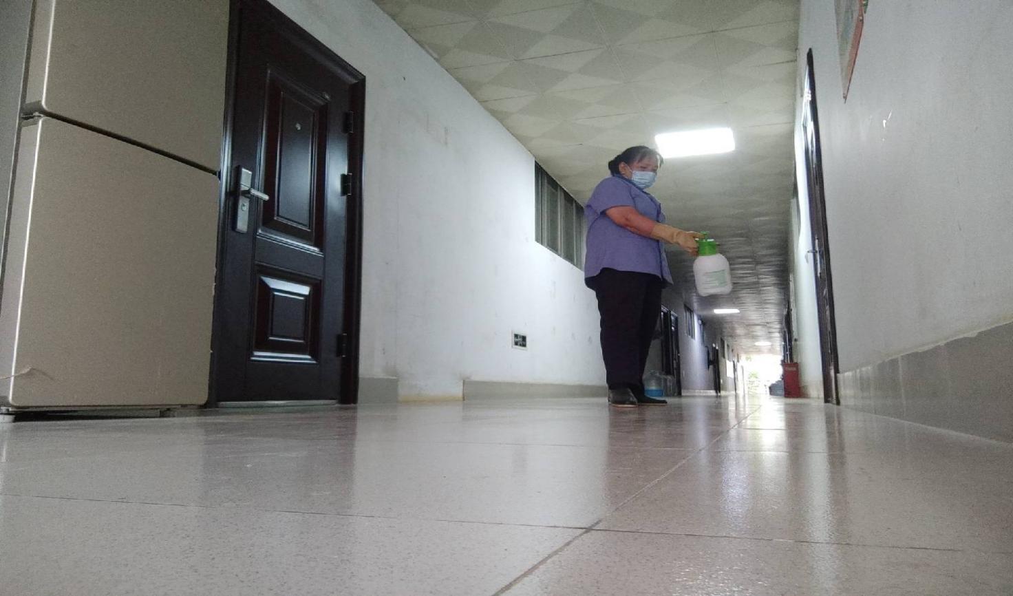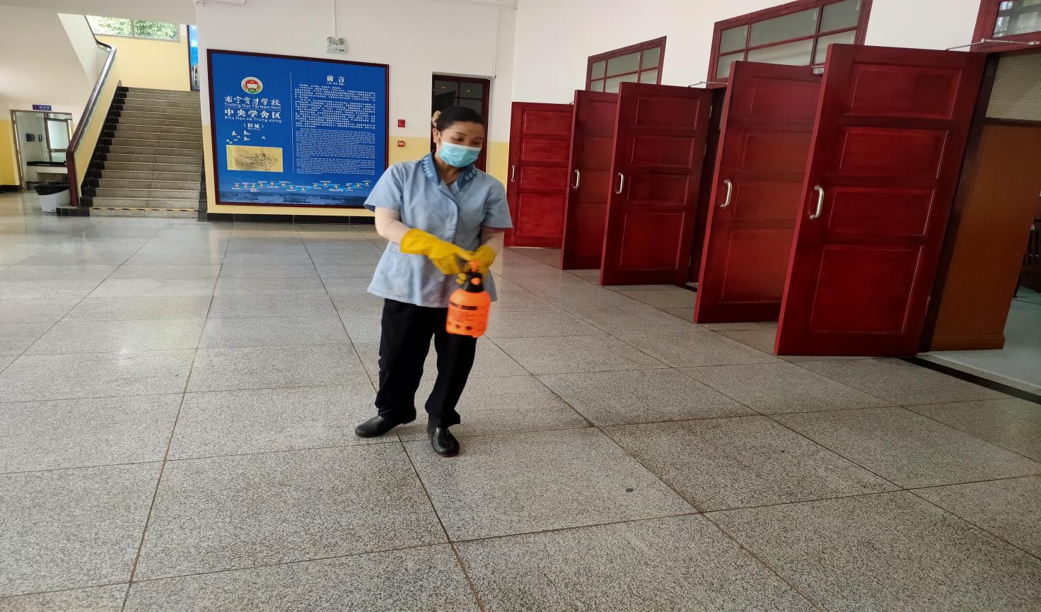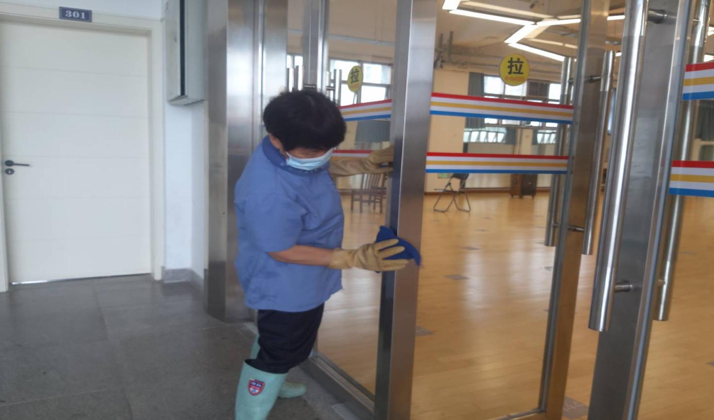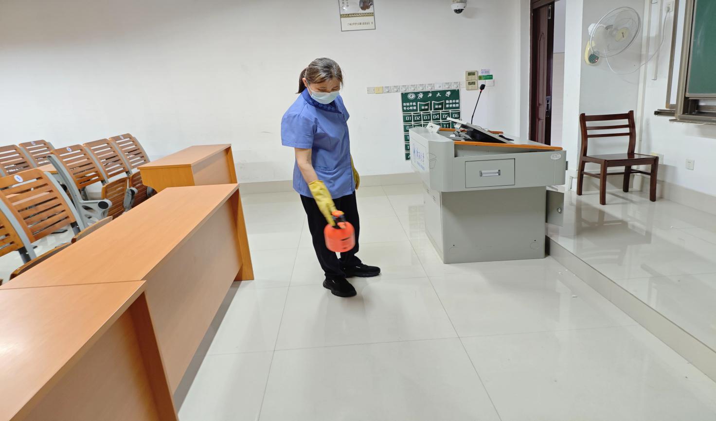 对公共教学楼宇的楼梯、走廊、门把手、课桌椅、电脑键盘、鼠标、水龙头、楼梯扶手、电梯间及按钮等高频接触表面进行重点杀菌消毒554次。