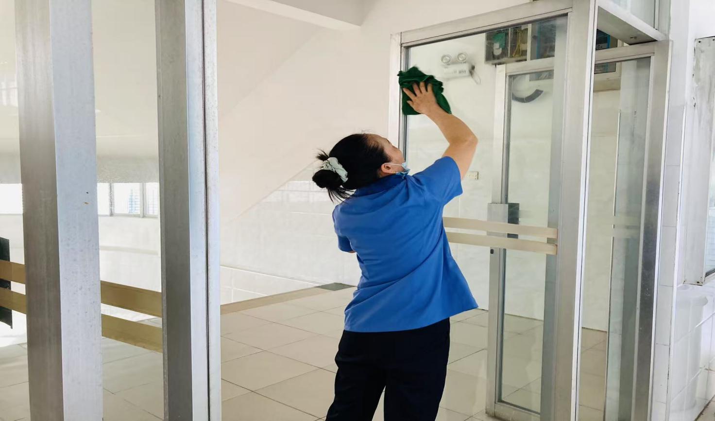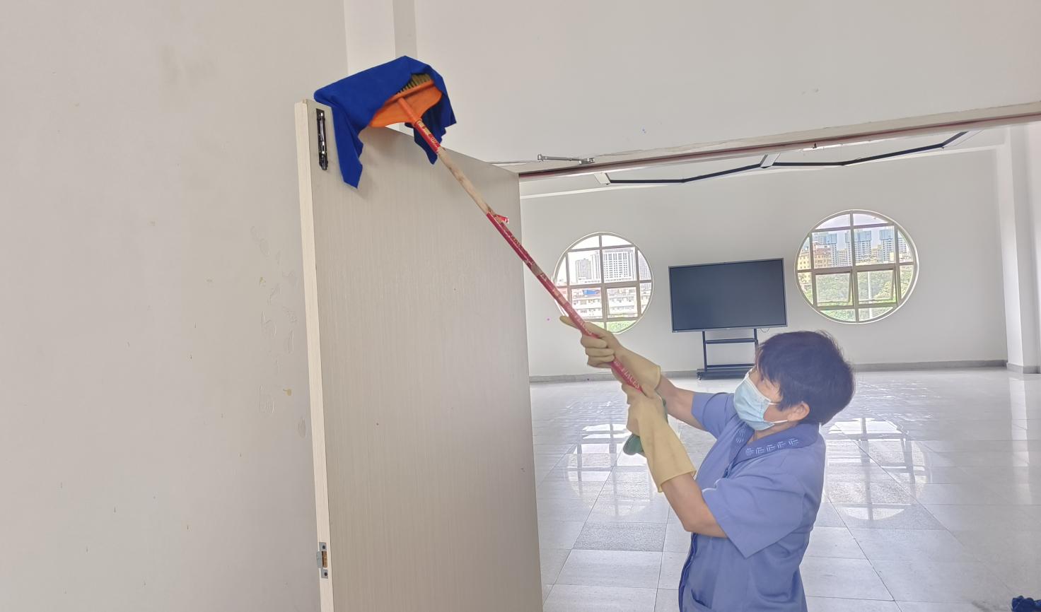 对公共教学楼宇的楼梯、走廊、门把手、课桌椅、电脑键盘、鼠标、水龙头、楼梯扶手、电梯间及按钮等高频接触表面进行重点杀菌消毒503次。