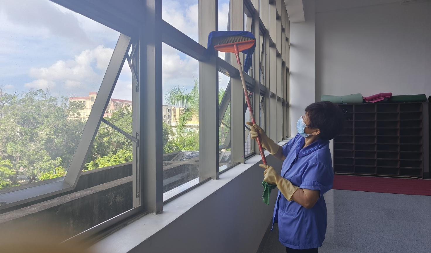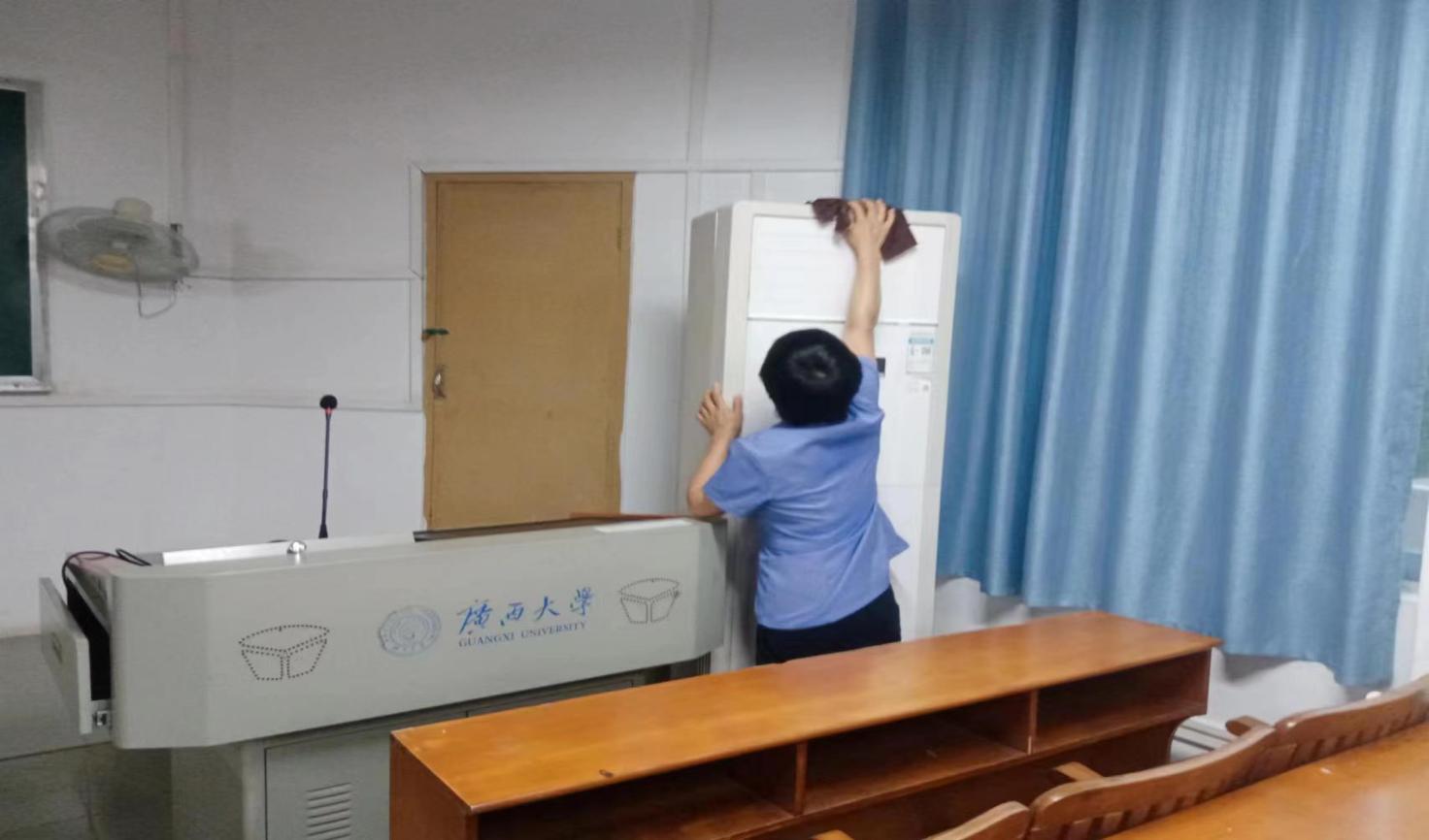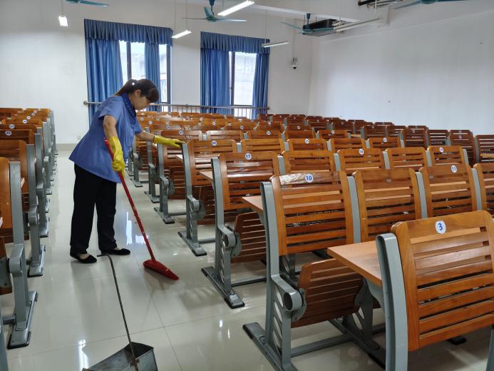 对海洋学院、土木学院土木平台、工商学院、新闻学院、农学院土化楼等26个学院进行日常卫生保洁工作。