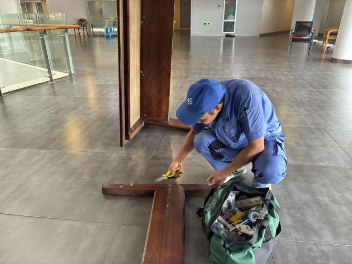 对学校公共设施进行日常巡查、维护,对师生报修问题及时维修、抢修,确保公共设施设备正常使用。本周共接单361单,其中电类160单,给水类20单,门窗类15单,排水类66单,疏通类49单,房屋本体类15单,桌椅类13单,其他类23单,完成361单。
