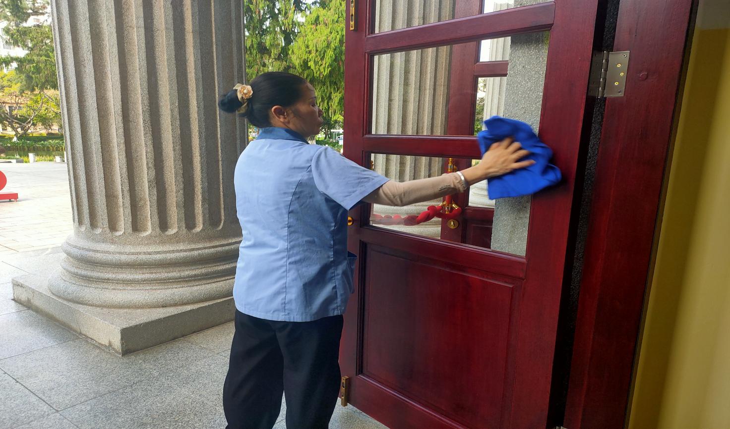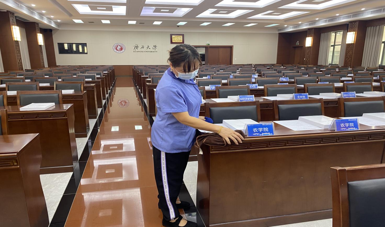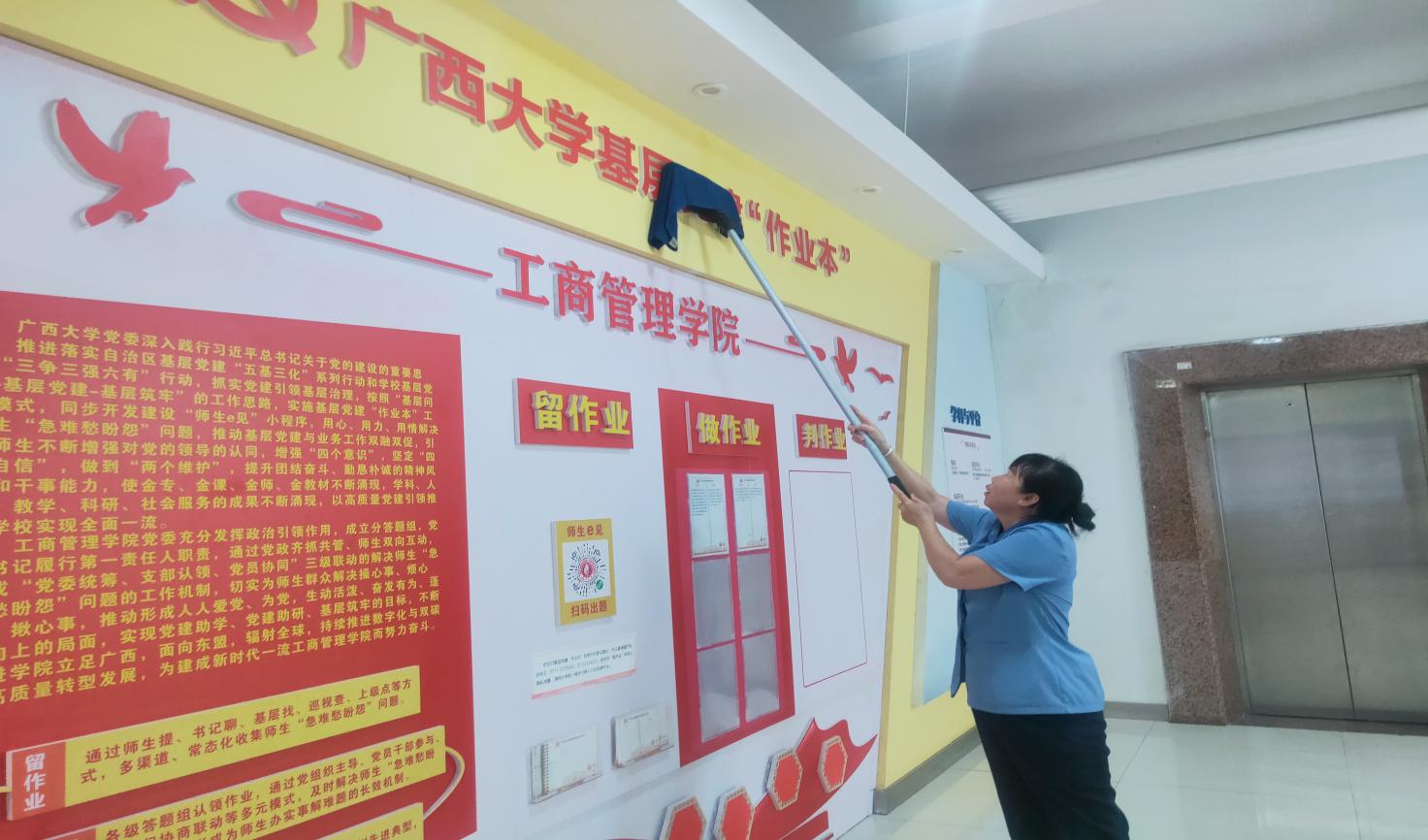 对君武馆、财务处、办公楼、大学生活动中心、保卫处等办公楼宇进行日常卫生保洁等服务工作。