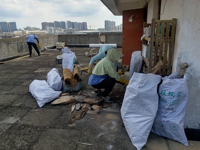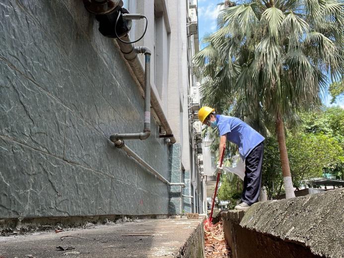 对语言中心、二教、三教、六教、十教、十一教、十五教、十六教和研究生院教室等教学楼宇进行日常卫生保洁服务工作,本周清理公共楼宇外围排水设施50次,清理公共楼宇天台排水设施4处。