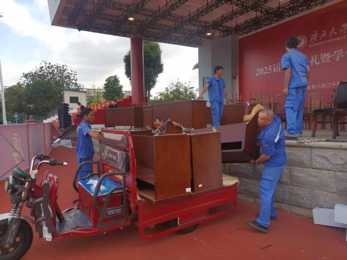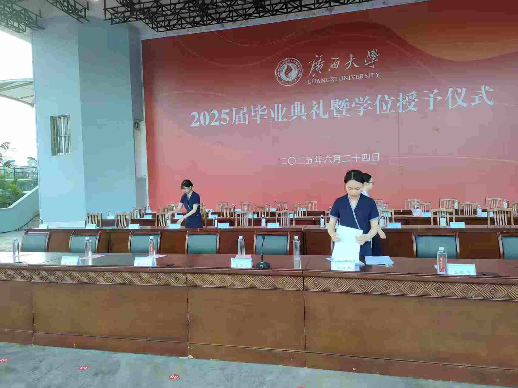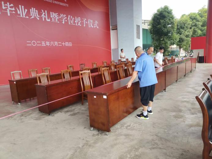 一、毕业典礼现场桌椅布置和保洁保障工作。