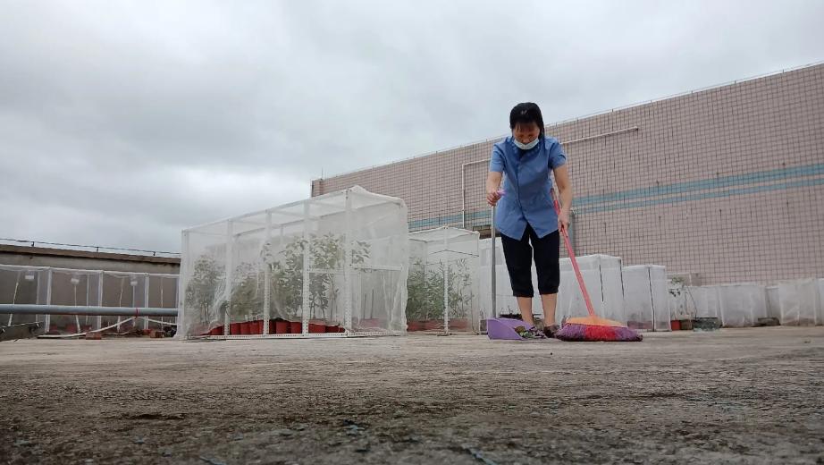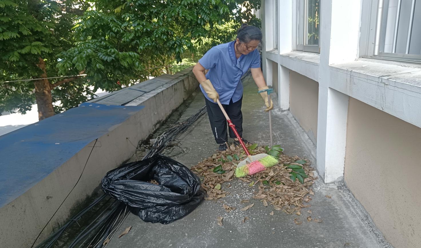 继续教育学院楼宇阳台落叶清理