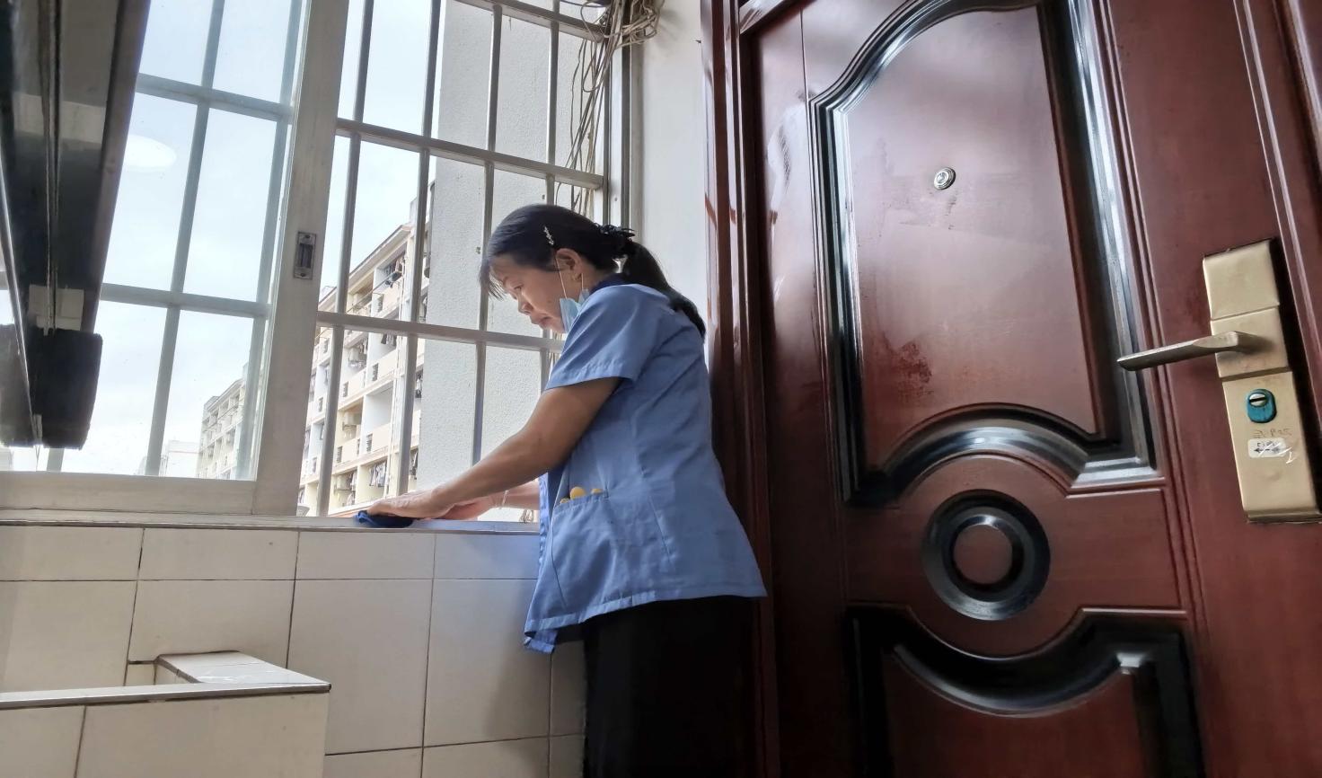 体育场馆走廊窗台清洁