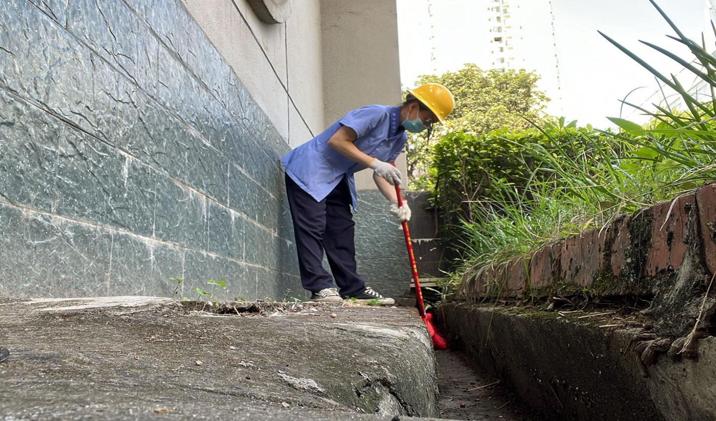 艺术学院楼宇外围排水设施清理