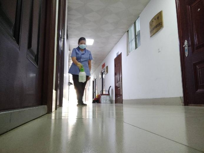 对公共教学楼宇的楼梯、走廊、门把手、课桌椅、电脑键盘、鼠标、水龙头、楼梯扶手、电梯间及按钮等高频接触表面进行重点杀菌消毒486次。