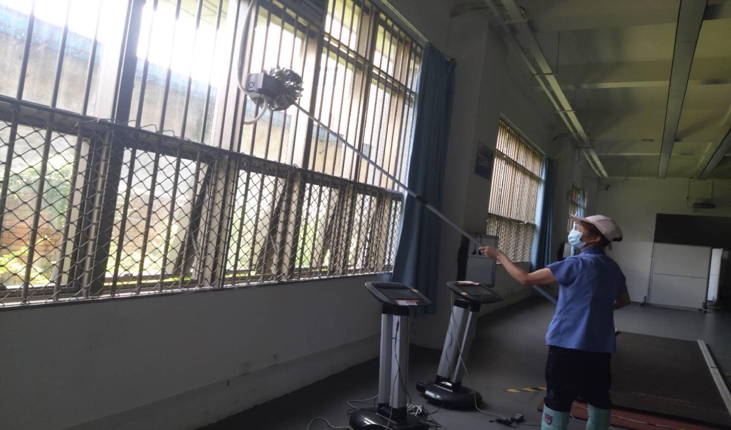 对公共教学楼宇的楼梯、走廊、门把手、课桌椅、电脑键盘、鼠标、水龙头、楼梯扶手、电梯间及按钮等高频接触表面进行重点杀菌消毒477次。