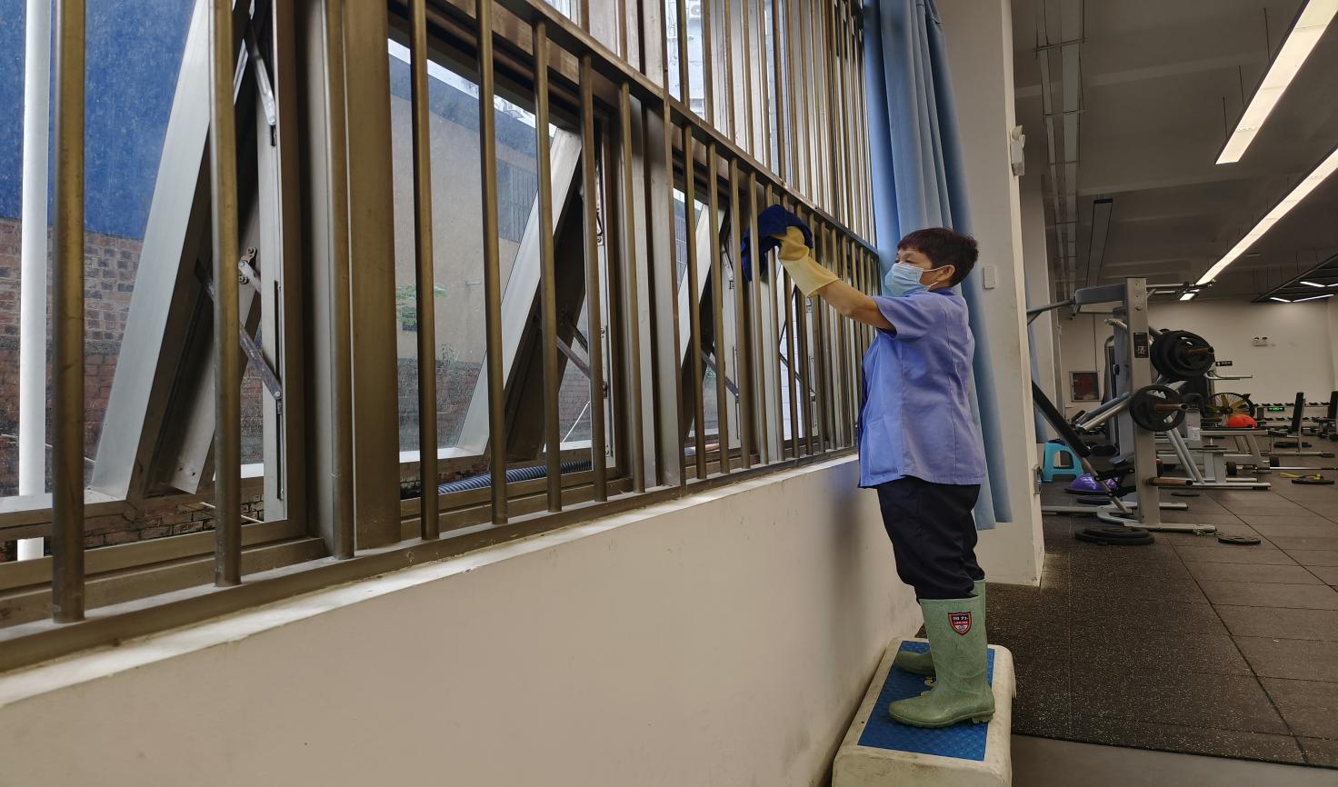 对东校园、西校园和北校园体育场馆进行日常卫生保洁工作。