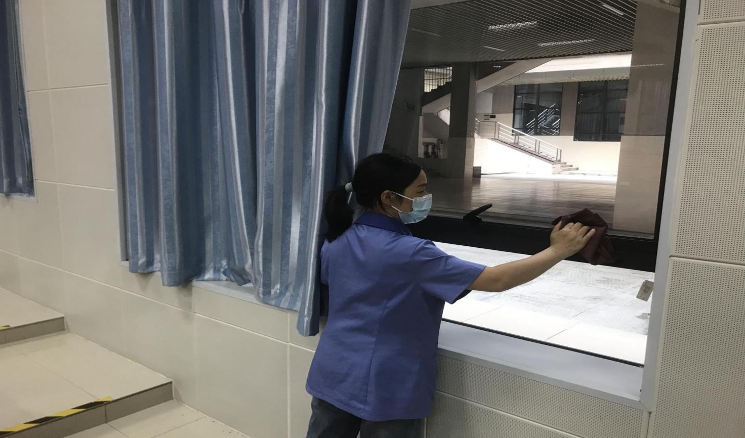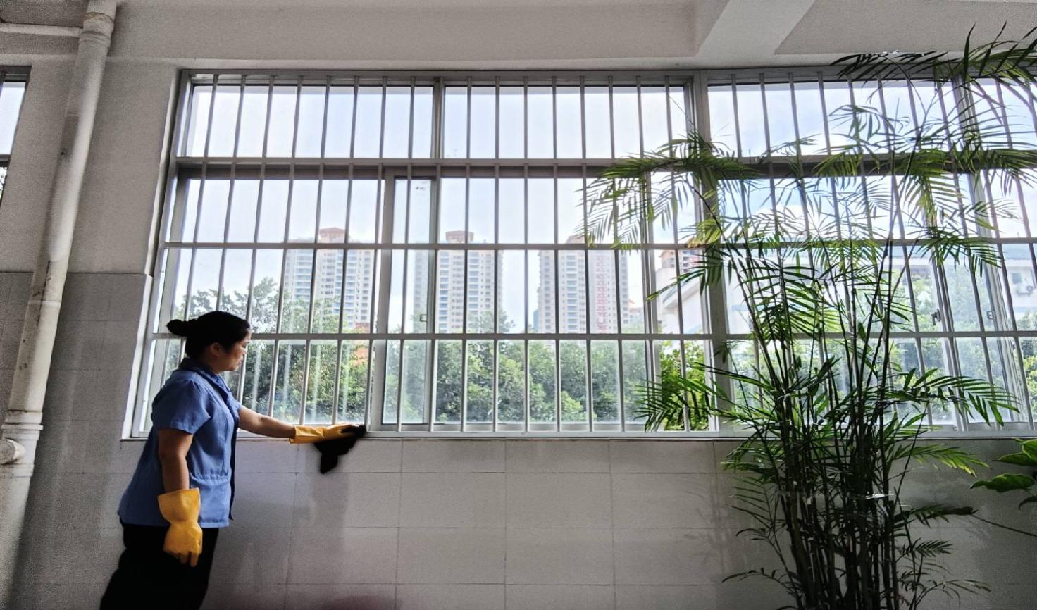 学院楼宇走廊窗台清洁