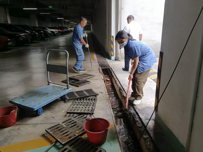 六教地下停车场清理排水沟淤泥