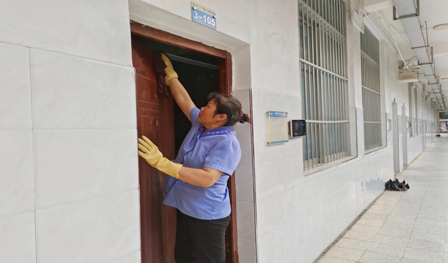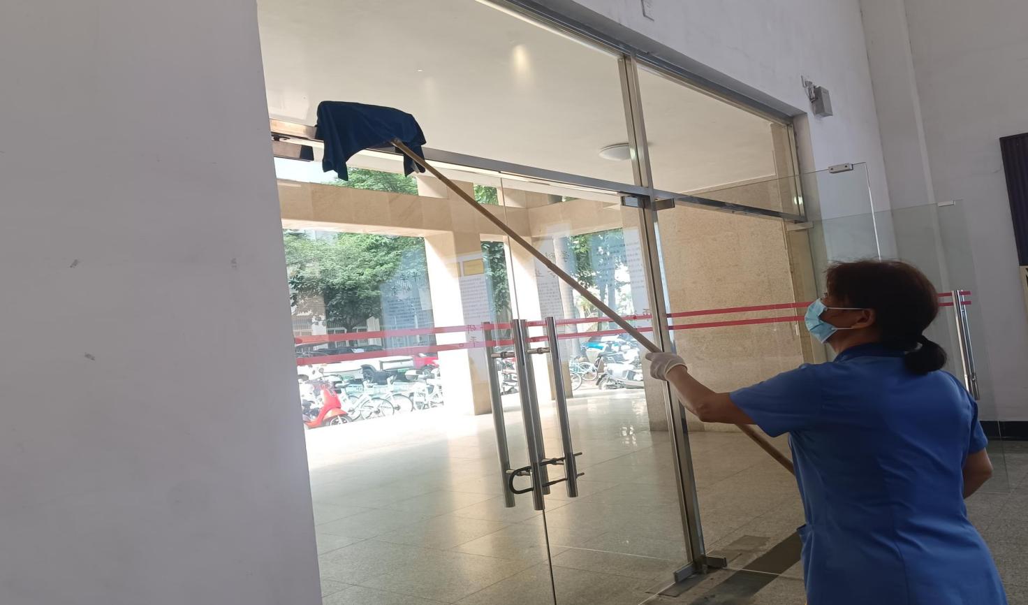 公共教学楼楼宇门体、门框清洁