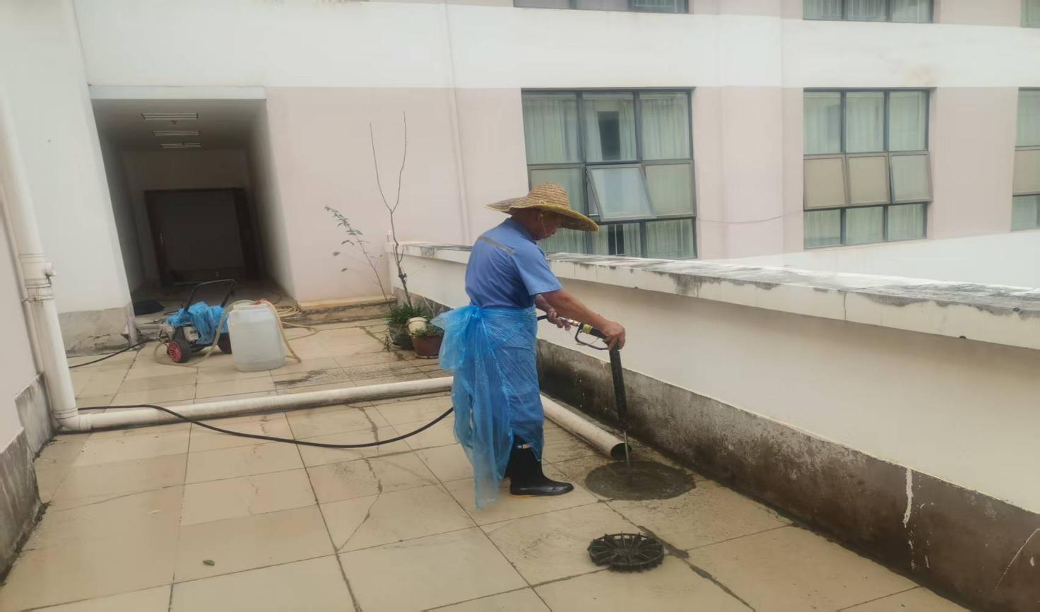 新闻学院三楼楼顶疏通地漏堵塞