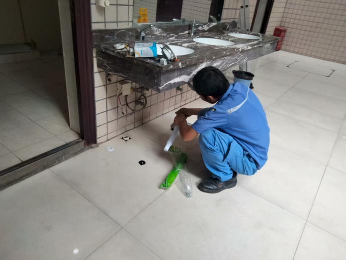 财务处卫生间洗手池更换排污管