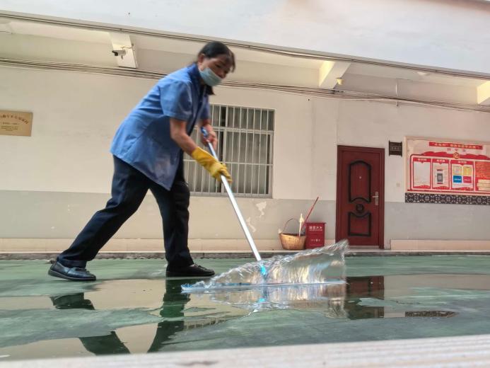 暴雨过后清扫楼栋积水