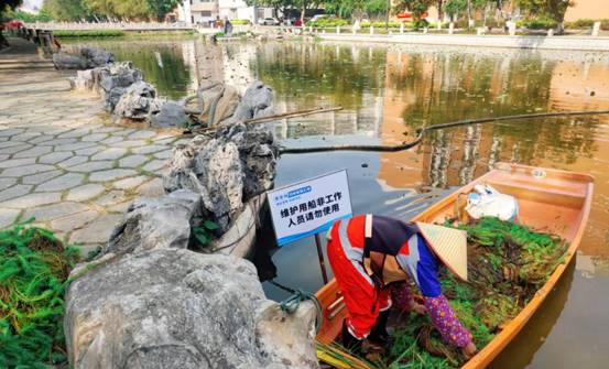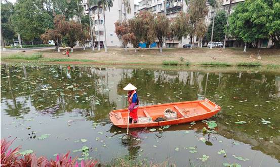 紫荆湖南段打捞青苔