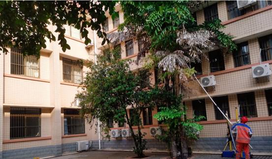 艺术学院内庭修剪枯枝、清理寄生植物