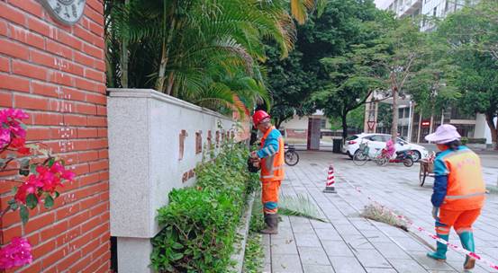 东校园东区修剪伞尾葵、绿篱拔兔丝子