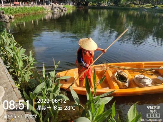1.6月13日上午,做好南宁市政协及南宁市环保局环境执法大队对我校16个内湖湖泊管养进行检查的迎检工作。