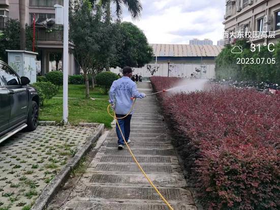 本周开始进行新一轮校园病媒生物防制工作。本轮消杀从7月5日开始,预计历时14天,防制范围包括所有的教学楼、办公楼、教职工住宅楼、食堂、农贸市场、医院、科研基地、仓库等外环境以及校园的主次干道的下水道口、公厕、垃圾桶(箱)、绿化带、雨水沟等,其中绿地30多万㎡,下水道、化粪池及各类地井约3500个、小型污积水体约1万㎡,防制的主要内容包括对上述区域外环境的鼠、蚊、蝇、蟑螂等病媒生物及红火蚁、白蚁进行有效防制;同时针对六教、十教等人员密集的教学、办公场所进行集中灭蚊,有效降低病媒生物密度。