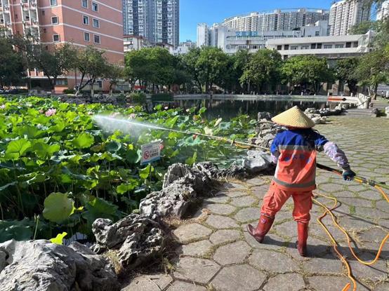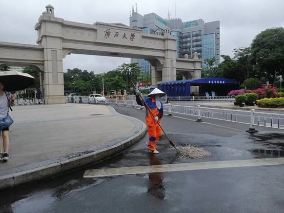 持续做好校内卫生清扫清洁工作,每日凌晨5点半就开始清洁校园的各大校道,作业总面积约80万㎡,人均保洁面积6800㎡,加强对校园内各主支干道、以及校内卫生死角等的清洁清扫工作,及时清理草地、树木中的枯叶、落叶,对校内绿化带等捡拾白色垃圾,保持校内环境干净整洁,并对校内公共区域的水沟、雨篦子进行持续跟进清理。暑假期间清理水沟约243条。
