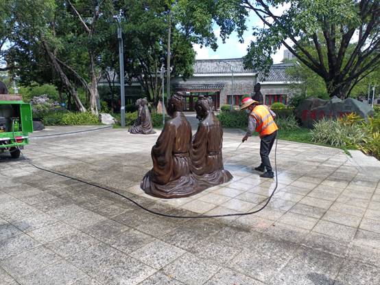 暑假期间,校园环卫绿化工作人员坚守岗位,有序进行环卫道路清扫保洁、绿化日常养护、垃圾清运、垃圾分类督导、湖泊管养、教职工住宅物业服务、公共区域破损水沟路面修复、雨篦子清理等各项工作。各板块工作开展如下:
