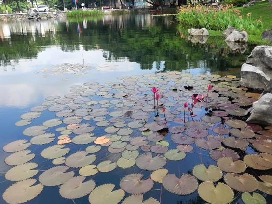 湖泊管养工作常态化进行,不断提高水质透明度。运维员持续对各湖荷叶进行施肥、病虫害治理等养护作业;做好鱼苗投放、水草补种、景观池打扫、污水入湖治理等湖泊管养工作,逐步完善水生植物+水生动物+微生物群落一体化,构建生物多样性景观湖泊。