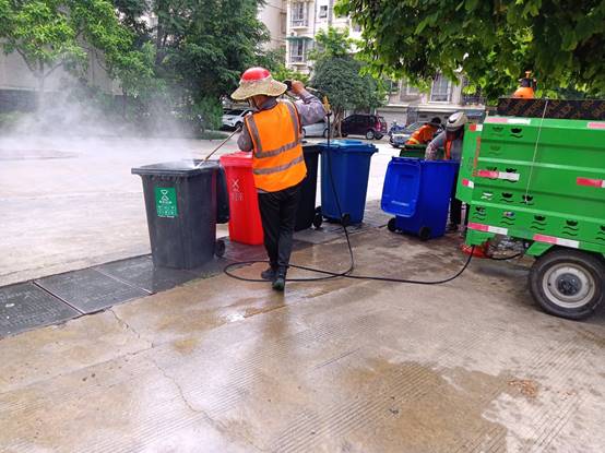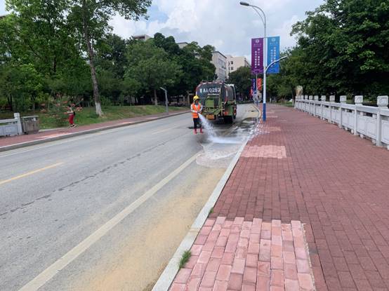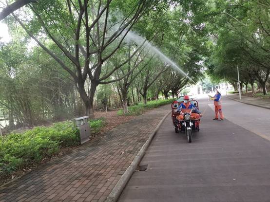 垃圾清运:7月是毕业离校季,垃圾清运量暴涨,为及时清运垃圾,物业公司临时增加16人(护工11人、司机5人)、3台三轮车及2台12吨压缩车协助清运,做到垃圾日产日清,并将垃圾分类回收及在垃圾中转站进行除臭处理。同时对校内所负责区域的垃圾桶、垃圾箱及周边进行定期清洁冲洗及消毒,减少细菌的滋生,避免出现垃圾桶异味现象。7、8月份共清理生活垃圾约为3485吨,家具垃圾约为261立方米,建筑垃圾约91立方米,绿化垃圾约660吨,有害垃圾约6车,三轮车清运共2238车次,勾臂车6196车次。