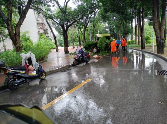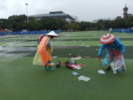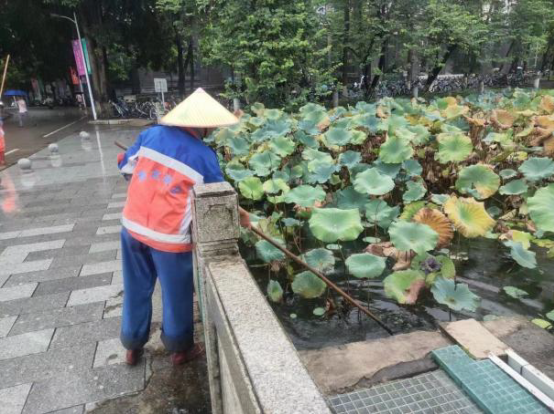 本周新生开学,因开学期间开放校园准许学生家长入校,校园人流量加大,车辆增多,产生垃圾量大。为保障校园环境卫生,环境办和物业服务中心灵活调度保洁人员,加大校园人流密集区域及主要道路的保洁工作,增加垃圾清运频次,减少地面垃圾滞留时间,全力做好校园户外卫生保障工作。本周阴雨天气多,环卫工人对雨天排查不放松,全天不间断巡查,及时清理校内路面积水、落叶、垃圾等,保障校内环境卫生及行人、车辆安全通行。