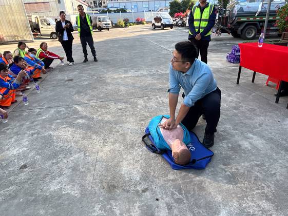 活动中,博世科物业安全员向员工们普及了消防安全知识、对如何正确使用灭火器进行了培训、详细讲解了心肺复苏的基本步骤和注意事项。在演练环节,指导员工们按照所示范的正确步骤进行了心肺复苏模拟操作;引导员工们如何在火灾中迅速、安全地逃生,并要求员工们亲手操作灭火器材,学会如何在火灾初起时正确使用灭火器迅速扑灭火源。