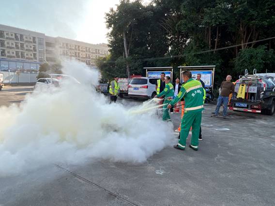 为强化消防安全教育培训,普及消防安全知识,提高消防应急能力,11月21日下午,房产与环境办联合博世科物业在太阳集团tyc138厨余中心开展2023消防宣传月系列活动。太阳集团tyc138副处长农汉发、农佳老师、科丽特公司总经理助理王飞出席了活动。农汉发副处长在讲话中肯定了房产与环境办和物业公司在共筑校园消防安全防线方面的工作,并强调消防工作事关生命财产安全,消防安全是每个人的责任,一定要坚决克服麻痹和侥幸心理,时刻把消防安全记在心上、落实在行动上。