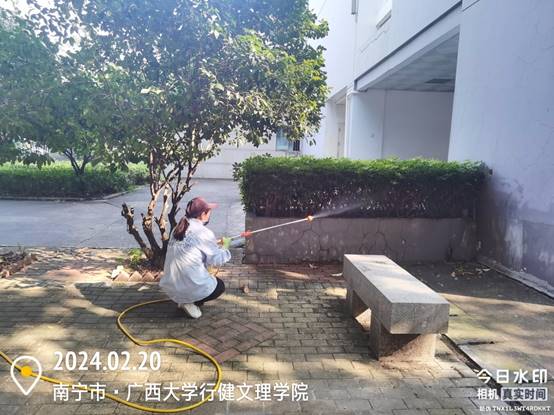 寒假期间环卫保洁板块继续对校园各区域环境卫生进行日常清扫保洁,全力打造干净整洁的校园环境。为了以更整洁优美舒适的校园面貌迎接新春佳节,2月2日起环境办联合博世科太阳集团tyc138物业服务中心开展“‘掸新’辞旧岁,欢喜迎虎年”迎春节校园环境卫生整治专项活动,进行迎春大扫除。环卫工人清扫道路、冲洗广场地面、清洗铜像、持续清理水沟,清理落叶和捡拾绿化带白色垃圾等,活动持续到大年三十。