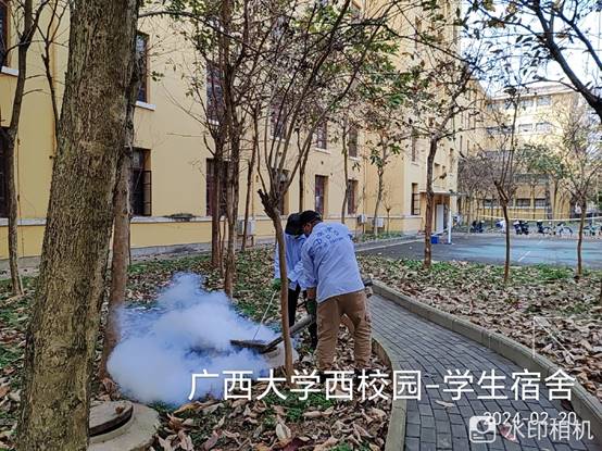 寒假期间绿化养护工人持续做好校园绿化养护工作,具体工作内容如下:
