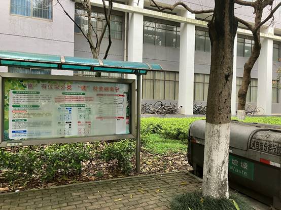 垃圾分类督导:按计划完成垃圾分类督导和宣传、清洁垃圾分类宣传展板、派发垃圾分类宣传单等工作,对校园进行全面巡查,及时处理发现的问题,本周还在行健学院增设两块垃圾分类宣传牌。