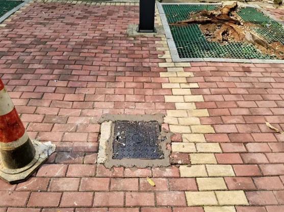 公共区域维修板块继续做好校内公共区域路沿石、路灯、水沟盖板、健身器材等设施排查、维修、抢修工作;及时对校内雨篦子、井盖等排水系统进行排查、疏通。本周对校内公共区域的道路路面、路灯、盖板等进行了36处的维修,并对排水口进行22次的疏通。