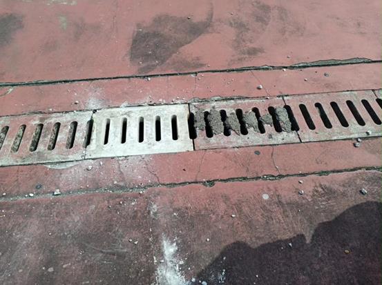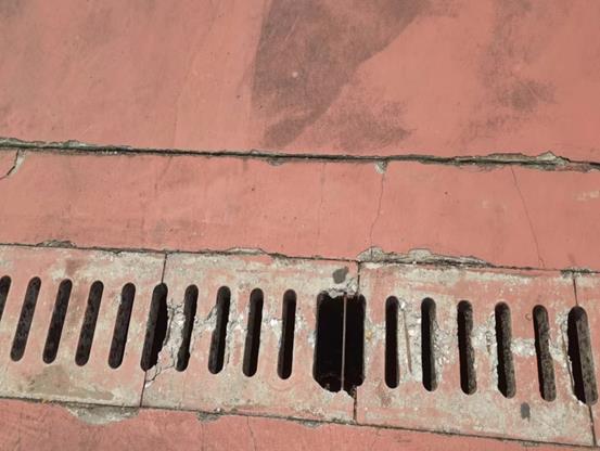 东校园篮球场盖板破损修复前