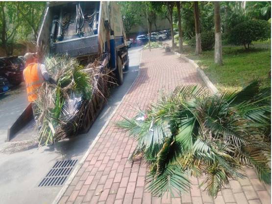 垃圾清运:按规定时间、路线清运校园垃圾,做到垃圾日产日清,并对垃圾桶和勾臂箱进行清洗和消杀。本周清运生活垃圾347.8吨,大件垃圾12.3吨,绿化垃圾39.7吨。