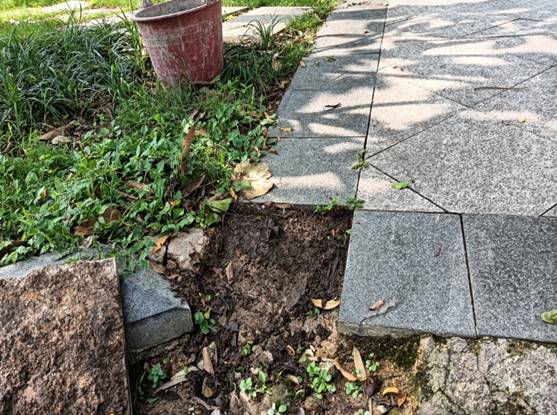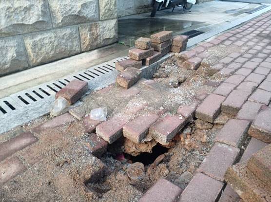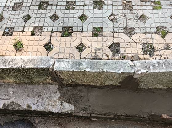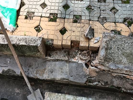 西校园离退休干部职工活动中心北面破损地砖修复前