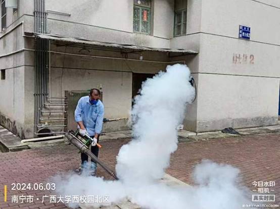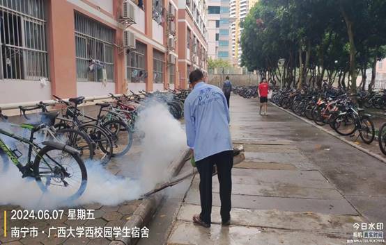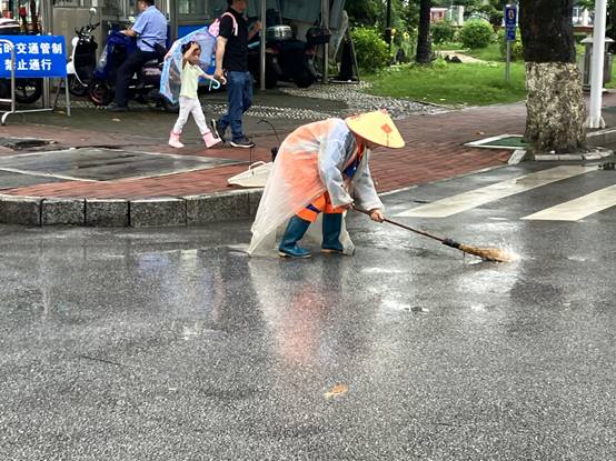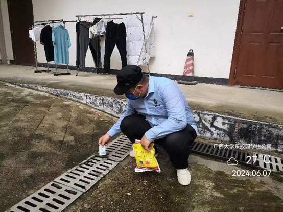 环卫保洁板块继续做好校园各区域环境卫生清扫保洁工作,保持干净整洁的校园环境。6月3日至5日南宁市连续发布暴雨橙色预警和黄色预警,环境办和博世科物业启动应急预案,全面展开暴雨应急措施。重点针对校园内可能出现内涝的区域,加大排险巡查力度,同时,对雨水井、排水沟、污水井等进行检查并清除杂物,确保排水系统畅通。