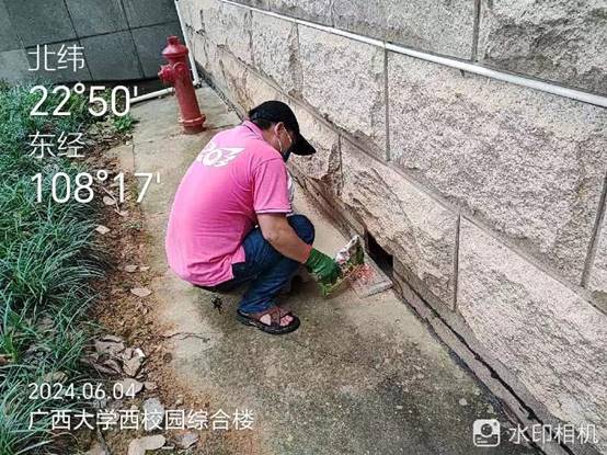本周开始对东、西校园和行健文理学院的教学办公区、教职工住宅区、学生公寓区等外环境实施新一轮灭鼠杀虫、白蚁、红火蚁等病媒生物防治工作。防制范围包括所有的教学楼、办公楼、教职工住宅楼、食堂、农贸市场、医院、科研基地、仓库等外环境以及校园的主次干道的下水道口、公厕、垃圾桶(箱)、绿化带、雨水沟等,实际有害生物防制面积约136万㎡。其中绿地约30多万㎡,下水道、化粪池及各类地井约3500个、小型污积水体约1万㎡,防制的主要内容为对上述区域外环境的鼠、蚊、蝇、蟑螂等病媒生物及红火蚁、白蚁进行有效防制。