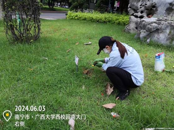 日常养护工作:对农学院、时光广场、校办周边、一幼、东校园中区、汇学堂、育才广场、行健学院、南大门、西校园中区、生科院、新东园,实验田路、六教、熊猫园、大礼堂、西校园北区、国际学院等区域进行拔杂草、病虫害防治、清理菟丝子、草坪修整、绿篱修整、松土、绿地施肥、绿地清理落叶、枯叶和残叶等其他绿化养护作业。