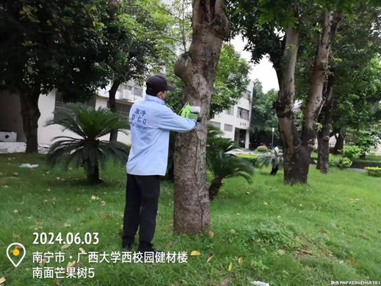 树枝修剪:对行健学院、土木工程实验平台工材基地、林学院、生科院、东体育场、东校园中区、办公楼、数信学院、大礼堂、西校园中区13栋、鸪江路、农学院、时光广场、崇文路等区域进行枯枝处理、树木低枝修剪、寄生枝修剪和靠近电线、建筑物、路灯及摄像头等设施的树枝修剪。