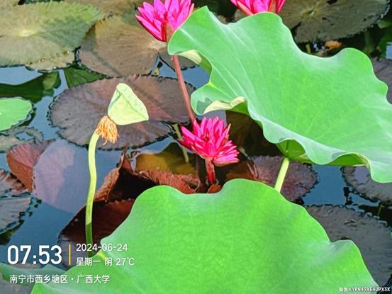持续做好16个景观湖和4个景观池的湖水治理工作,清理大面积油膜,防止堆积,做到水面干净整洁;控鱼常态化进行,本周集中对彩蝶湖捕捉杂鱼,共计打捞94斤杂鱼;翠湖、莲湖、绿榕湖集中打捞福寿螺,共计打捞福寿螺及螺蛋约390斤;本周雨水天气依旧较多,巡查各湖水位,对镜湖、鉴湖、翠湖、月牙湖、大小碧云湖和莲湖等水位较高的湖泊进行开闸降水;大碧云湖进行水草修剪,并打捞水底青苔;莲湖、爱莲湖、绿榕湖修剪美人蕉、风车草;镜湖和大碧云湖补种裸露区域水草;小碧云湖继续打捞水底丝状藻青苔。本周发现5朵并蒂睡莲,分别在绿榕湖、紫荆湖中段、南段,点缀着美丽的校园。16个景观湖和4个景观池总计清运垃圾10吨。