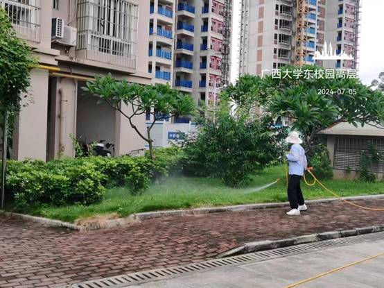 前期连续雨水天气,滋生蚊虫较多。本周7月5日—7月7日,环境办安排南宁市康净卫生消毒杀虫有限责任公司对东、西校园、行健学院教职工宿舍区、行政办公楼、教学楼外围绿化带、下水井、水沟等采用药物滞留喷洒处理方式加强灭蚊。