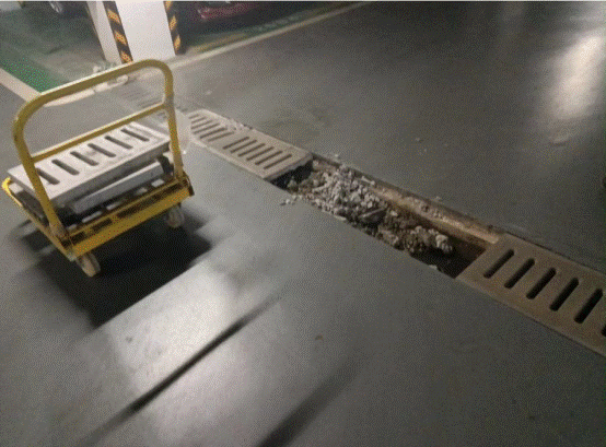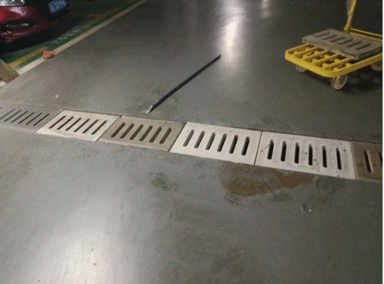 东高九栋地下停车场入口排水沟盖破损修复前
