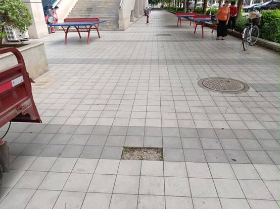 公共区域维修板块继续做好校内公共区域地面、路沿石、路灯、水沟盖板、健身器材等设施排查和维修工作;及时对校内雨篦子、井盖、管道等排水系统进行排查、疏通。本周对校内公共区域道路路面、路灯、盖板等维修共25处,排水口疏通18次。