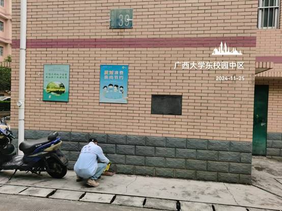 公共区域维修板块继续做好校内公共区域地面、路沿石、路灯、水沟盖板、健身器材等设施排查、维修、抢修工作;及时对校内雨篦子、井盖、管道等排水系统进行排查、疏通。本周对校内公共区域道路路面、路灯、盖板等维修共27处,排水口疏通17次。